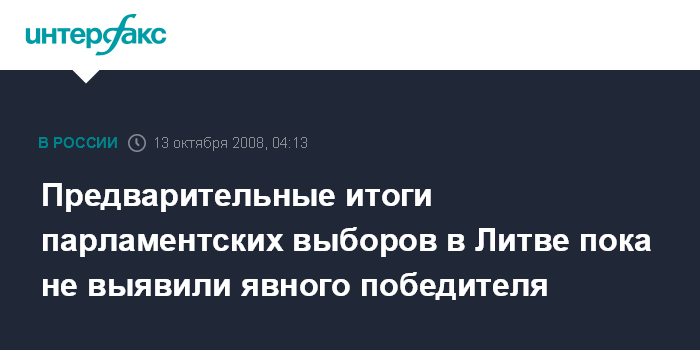 Вильнюс. 13 октября. ИНТЕРФАКС - По итогам голосования в первом туре парламентских выборов в Литве почти на равных пока идут пять партий, заметный лидер не выявился.