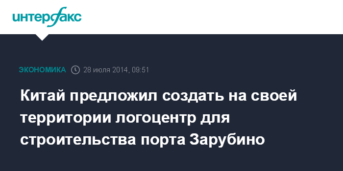Китай предложил создать на своей территории логоцентр для строительства порта Зарубино