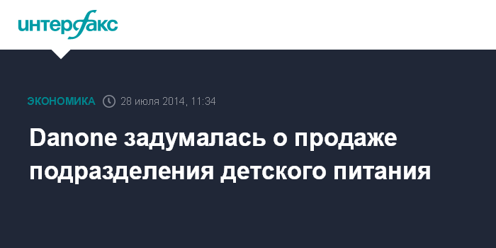 Москва. 28 июля. INTERFAX.RU - Французская группа Danone SA обдумывает возможность продажи подразделения детского питания американской Hospira Inc., сумма сделки может составить около $5 млрд, пишет The Financial Times со ссылкой на осведомленные источники.