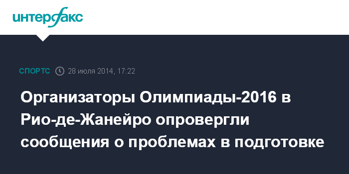 Москва. 28 июля. INTERFAX.RU - Организаторы Олимпийских игр 2016 года, которые пройдут в Рио-де-Жанейро, заявили, что информация о многочисленных проблемах в подготовке не соответствует действительности, сообщает The Guardian.