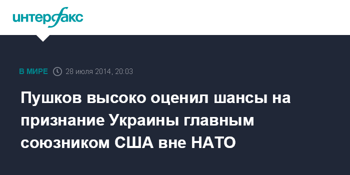 Москва. 28 июля. INTERFAX.RU - Шансы на принятие в США закона о признании Украины главным союзником США вне НАТО довольно высоки, считает глава думского комитета по международным делам Алексей Пушков "Интерфаксу" в понедельник.