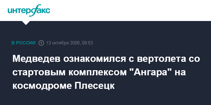 Медведев ознакомился с вертолета со стартовым комплексом "Ангара" на космодроме Плесецк