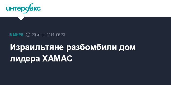 Москва. 29 июля. INTERFAX.RU - Дом одного из лидеров ХАМАС в секторе Газа подвергся артобстрелу со стороны израильской армии обороны в ночь на вторник, сообщают западные СМИ.