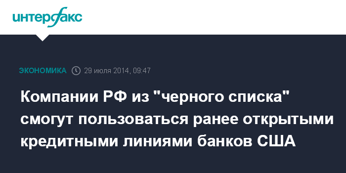 Компании РФ из "черного списка" смогут пользоваться ранее открытыми кредитными линиями банков США