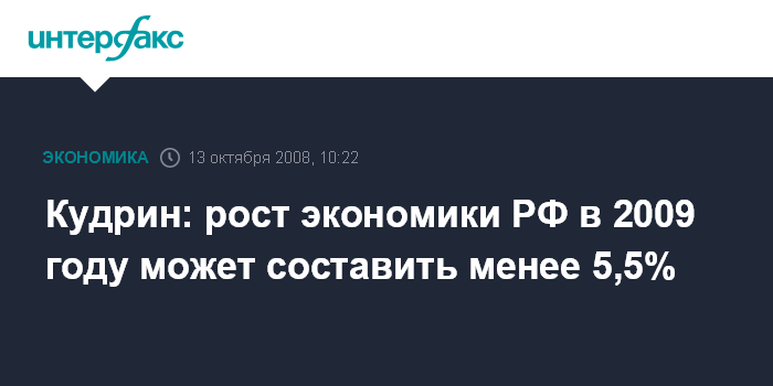 Кудрин: рост экономики РФ в 2009 году может составить менее 5,5%