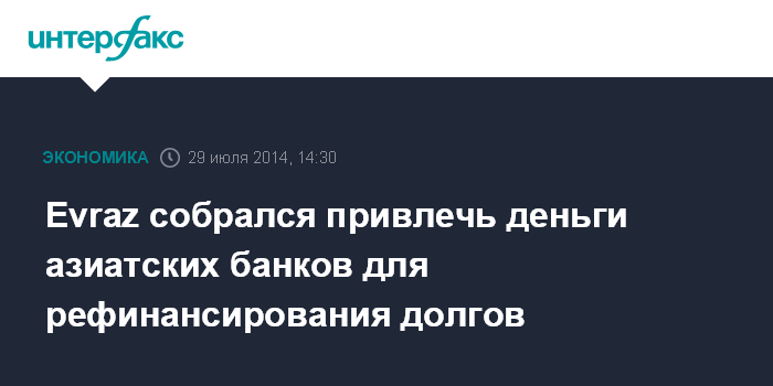 Москва. 29 июля. INTERFAX.RU - Evraz plc обсуждает с рядом азиатских банков возможность открытия кредитных линий для рефинансирования своих долгов, сообщили "Интерфаксу" источники в банковских кругах.