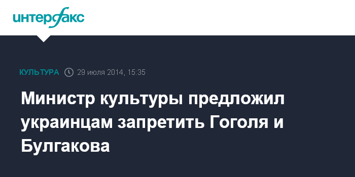 Министр культуры предложил украинцам запретить Гоголя и Булгакова