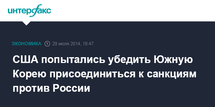 США попытались убедить Южную Корею присоединиться к санкциям против России