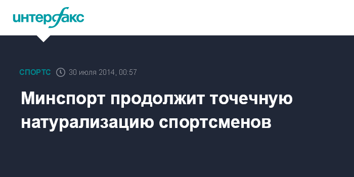 Москва. 30 июля. INTERFAX.RU - Минспорта продолжит натурализацию зарубежных спортсменов в сборные России, заявил заместитель министра спорта РФ Юрий Нагорных, курирующий зимние виды спорта. При этом он отметил, что в "вопросе будет точечный подход".
