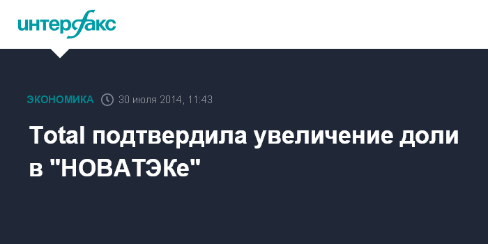На прошлой неделе источник "Интерфакса" сообщал, что на тот момент доля Total в "НОВАТЭКе" выросла до 18,2%. По данным на конец первого квартала 2014 года, Total владела чуть более 17% акций "НОВАТЭКа".