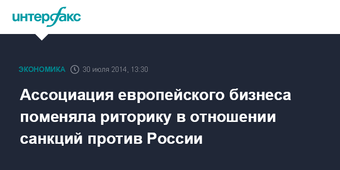 Москва. 30 июля. INTERFAX.RU - Ассоциация европейского бизнеса за прошедшие две недели поменяла риторику в отношении антироссийских санкций.