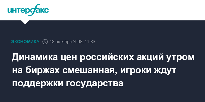 Динамика цен российских акций утром на биржах смешанная, игроки ждут поддержки государства
