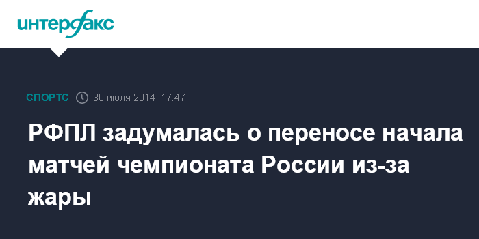 Москва. 30 июля. INTERFAX.RU - Президент РФПЛ Сергей Прядкин заявил, что премьер-лига, вероятно, пойдет на перенос дневных матчей чемпионата России на вечернее время из-за аномальной жары.