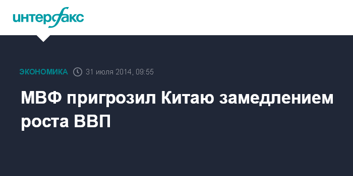 По оценкам фонда, ВВП Китая увеличится на 7,4% в 2014 году, однако в 2015 году рост замедлится до 7,1% и в дальнейшем продолжит ослабляться. Прогноз МВФ основан на предположении о том, что Китай будет придерживаться нынешних темпов реформирования экономики, призванного сократить ее зависимость от экспорта и капиталоемких отраслей и переориентировать ее на внутреннее потребление.