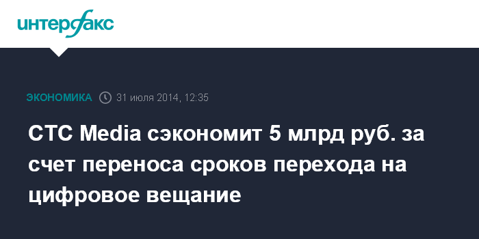СТС Media сэкономит 5 млрд руб. за счет переноса сроков перехода на цифровое вещание