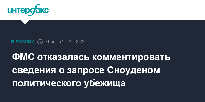 Москва. 31 июля. INTERFAX.RU - В Федеральной миграционной службе (ФМС) не комментируют информацию о том, что экс-сотрудник ЦРУ Эдвард Сноуден подал документы на получение политического убежища в России.