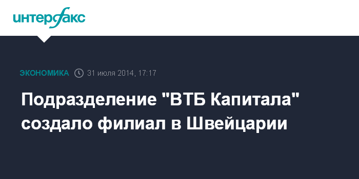 Подразделение "ВТБ Капитала" создало филиал в Швейцарии