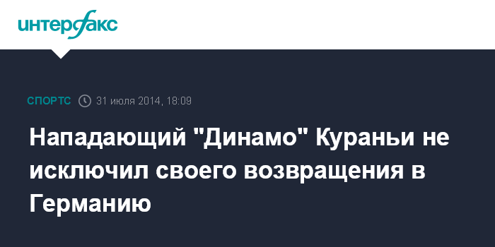 Москва. 31 июля. INTERFAX.RU - Нападающий московского "Динамо" Кевин Кураньи в следующем сезоне может вернуться в Германию.