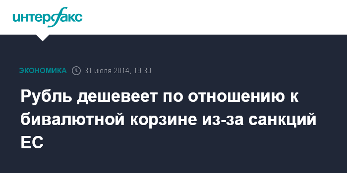 Москва. 31 июля. INTERFAX.RU - Рубль перешел от роста к снижению по отношению к доллару, евро и бивалютной корзине в вечерние часы четверга на торгах Московской биржи на фоне неопределенности из-за новых санкций ЕС.