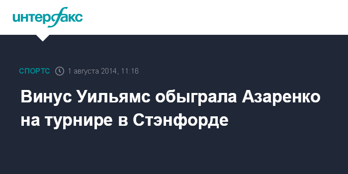 Москва. 1 августа. INTERFAX.RU - Американская теннисистка Винус Уильямс во втором круге турнира в Стэнфорде победила Викторию Азаренко из Белоруссии. Встреча завершилась со счетом 6:4, 7:6 (7:1) в пользу старшей Уильямс.