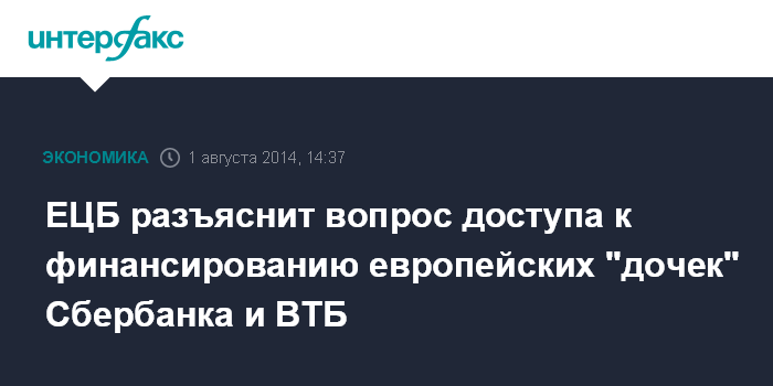 ЕЦБ разъяснит вопрос доступа к финансированию европейских "дочек" Сбербанка и ВТБ