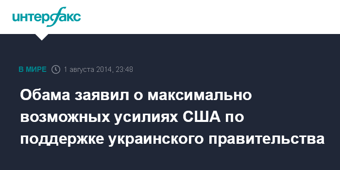 Москва. 1 августа. INTERFAX.RU - Администрация президента США Барака Обамы сделала все от себя зависящее, чтобы поддержать украинское правительство и помешать России и дальше вмешиваться во внутренние дела Украины, сообщил в пятницу американский президент.
