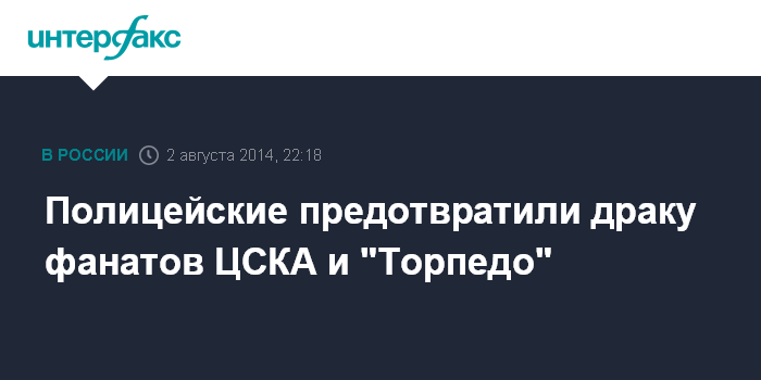 "Болельщики ЦСКА попытались затеять драку с фанатами "Торпедо", но сотрудники полиции ее пресекли. 15 человек выведены за пределы стадиона", - сказал сотрудник пресс-службы.