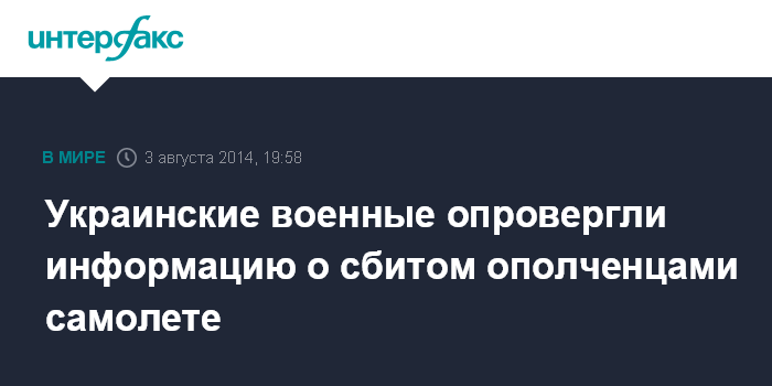 Москва. 3 августа. INTERFAX.RU - В пресс-центре военной операции на востоке Украины опровергли информацию о том, что в воскресенье был сбит ополченцами самолет ВВС.