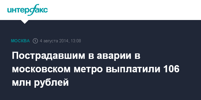 Пострадавшим в аварии в московском метро выплатили 106 млн рублей