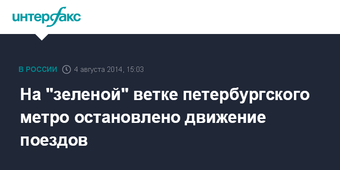 Москва. 4 августа. INTERFAX.RU - Движение поездов петербургского метрополитена на третьей ("зеленой") ветке временно остановлено, сообщили "Интерфаксу" в пресс-службе метро.