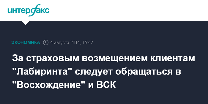 За страховым возмещением клиентам "Лабиринта" следует обращаться в "Восхождение" и ВСК