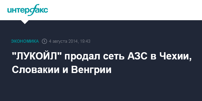 Москва. 4 августа. INTERFAX.RU - "ЛУКОЙЛ" подписал соглашения с компаниями MOL Plc. и Norm Benzinkut Kft о продаже активов в Чехии, Словакии и Венгрии, говорится в пресс-релизе нефтяной компании.