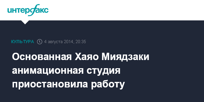 Москва. 4 августа. INTERFAX.RU - Анимационная студия Ghibli, основанная знаменитым японским режиссером и сценаристом Хаяо Миядзаки, приостановила работу, сообщает The Guardian со ссылкой на японское телевидение.