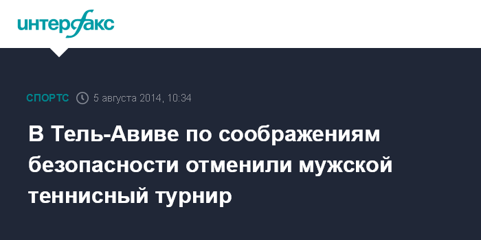 Москва. 5 августа. INTERFAX.RU - Мужской теннисный турнир в Тель-Авиве, который должен был пройти с 15 по 21 сентября, не состоится, информирует официальный сайт Ассоциации теннисистов-профессионалов (ATP).