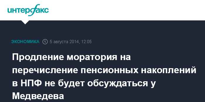 Продление моратория на перечисление пенсионных накоплений в НПФ не будет обсуждаться у Медведева