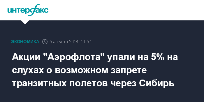 Влияние на акции "Аэрофлота", скорее всего, оказали новости о том, что Россия может запретить транссибирские перелеты из Европы в Азию в ответ на европейские санкции против лоукостера "Добролет".