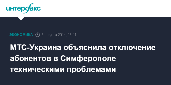 Москва. 5 августа. INTERFAX.RU – Украинский оператор мобильной связи "МТС-Украина" сообщил, что отключение абонентов в Симферополе связано с тем, что компания лишилась технической возможности осуществлять контроль над одним из ключевых объектов связи, который находится на территории Крыма.