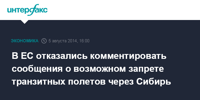 В ЕС отказались комментировать сообщения о возможном запрете транзитных полетов через Сибирь