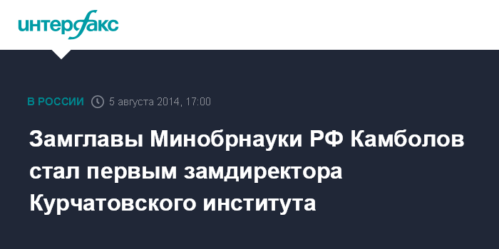 "Назначение Камболова на должность первого заместителя директора НИЦ "Курчатовский институт" обусловлена его продолжительной активной деятельностью по направлению безопасного развития ядерной энергетики", - говорится в сообщении пресс-службы Минобрнауки РФ, поступившем в "Интерфакс" во вторник.