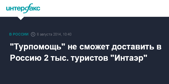 "Турпомощь" не сможет доставить в Россию 2 тыс. туристов "Интаэр"