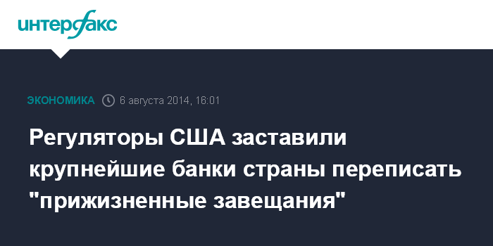 Американские банки обязаны ежегодно предоставлять планы, расписывающие действия для минимизации рисков для экономики страны в случае их банкротства. Правило касается 11 банков, активы которых превышают $250 млрд.