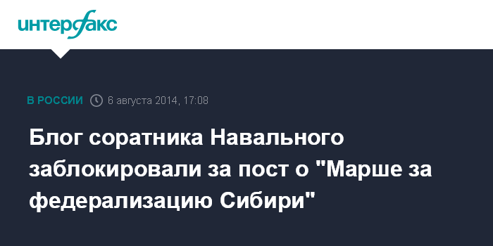 Блог соратника Навального заблокировали за пост о "Марше за федерализацию Сибири"