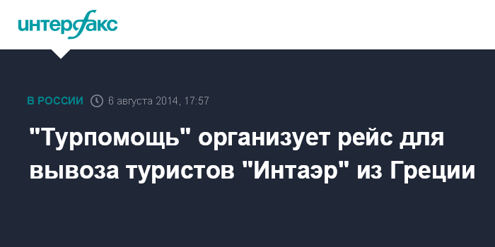 "Турпомощь" организует рейс для вывоза туристов "Интаэр" из Греции