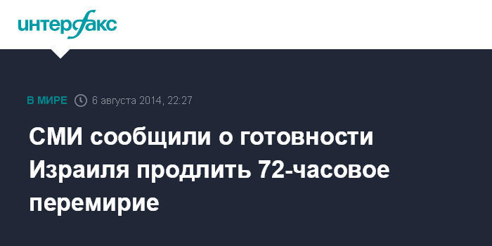 Москва. 6 августа. INTERFAX.RU - Власти Израиля не возражают против идеи продления 72-часового перемирия в секторе Газа, сообщает BBC со ссылкой на неназванного израильского чиновника.