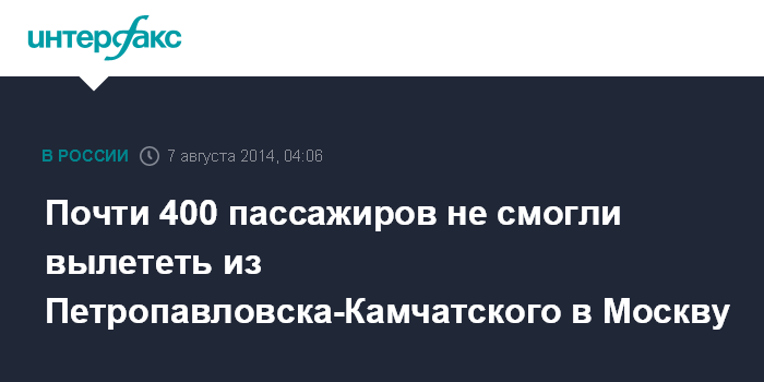 Москва. 7 августа. INTERFAX.RU - Самолет "Аэрофлота" рейсом 1731 из-за поломки не смог в среду вылететь с Камчатки в Москву, сообщил агентству "Интерфакс" в четверг диспетчер аэропорта Петропавловска-Камчатского.