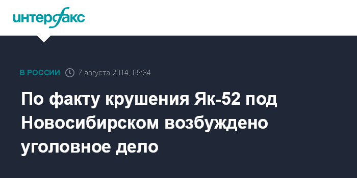 По факту крушения Як-52 под Новосибирском возбуждено уголовное дело