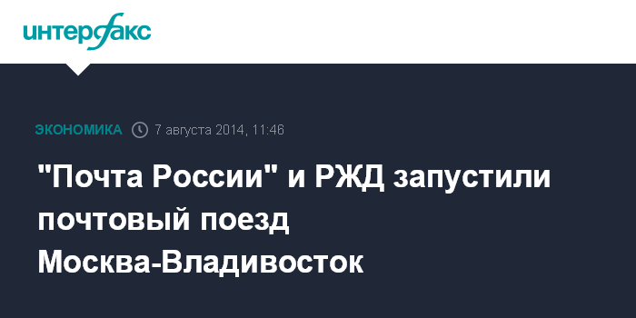 Почтовый состав будет включать от 10 до 16 вагонов. Срок его движения от Москвы до Владивостока составит 10 дней. "Почта России" также собирается рассмотреть возможность запуска почтовых поездов по другим маршрутам.