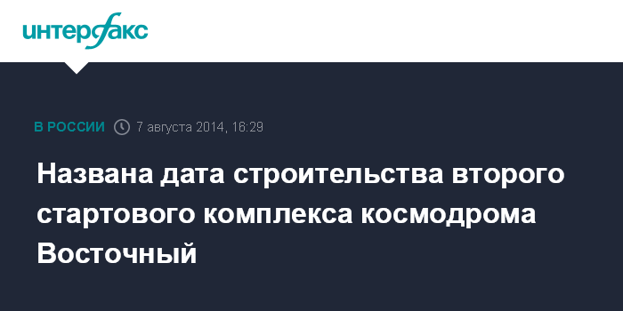 Москва. 7 августа. INTERFAX.RU - Работы по строительству второго стартового комплекса на космодроме Восточный начнутся в начале осени. Об этом сообщил вице-премьер Дмитрий Рогозин в четверг на церемонии представления нового гендиректора Государственного космического научно-производственного центра имени Хруничева.