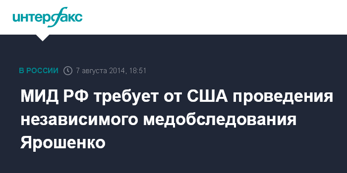 В этой связи было вновь высказано настоятельное требование к властям США придерживаться соответствующих международных обязательств в гуманитарной сфере, предоставив российским врачам возможность провести независимое медицинское освидетельствование Ярошенко.