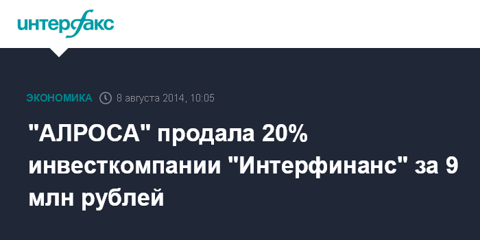 "АЛРОСА" продала 20% инвесткомпании "Интерфинанс" за 9 млн рублей